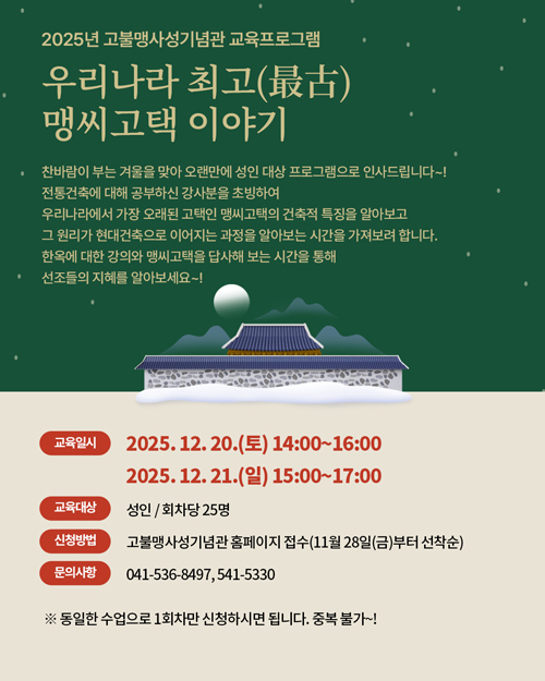 고불맹사성기념관 임시휴관 안내(12.04.~12.05.)