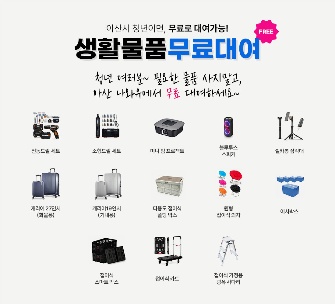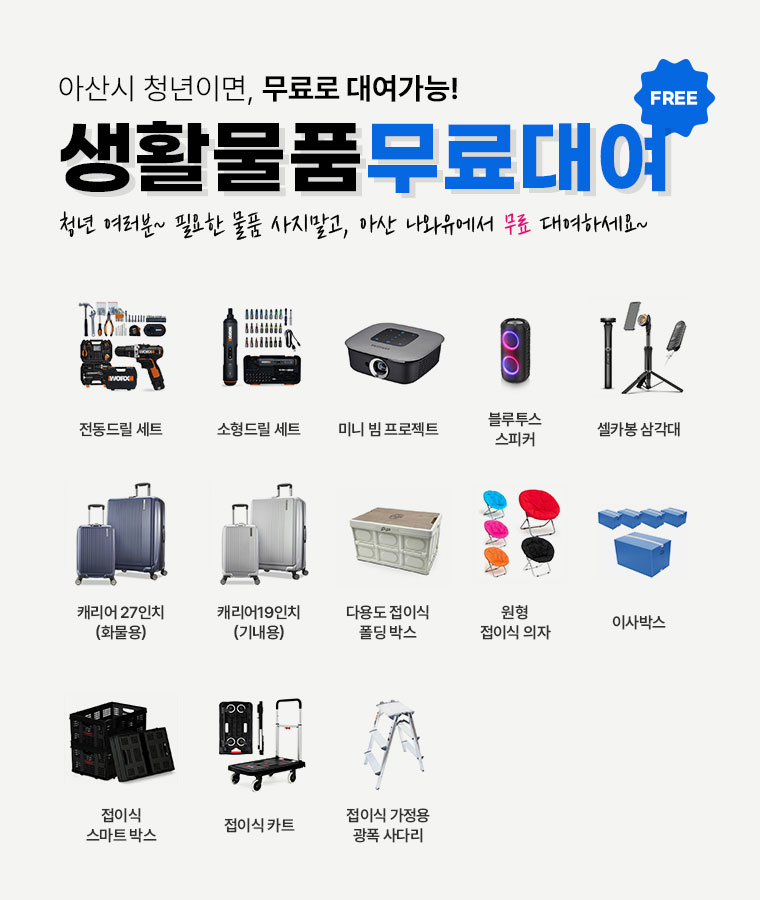 청년 여러분~ 필요한 물품 사지말고 무료 대여하세요~
