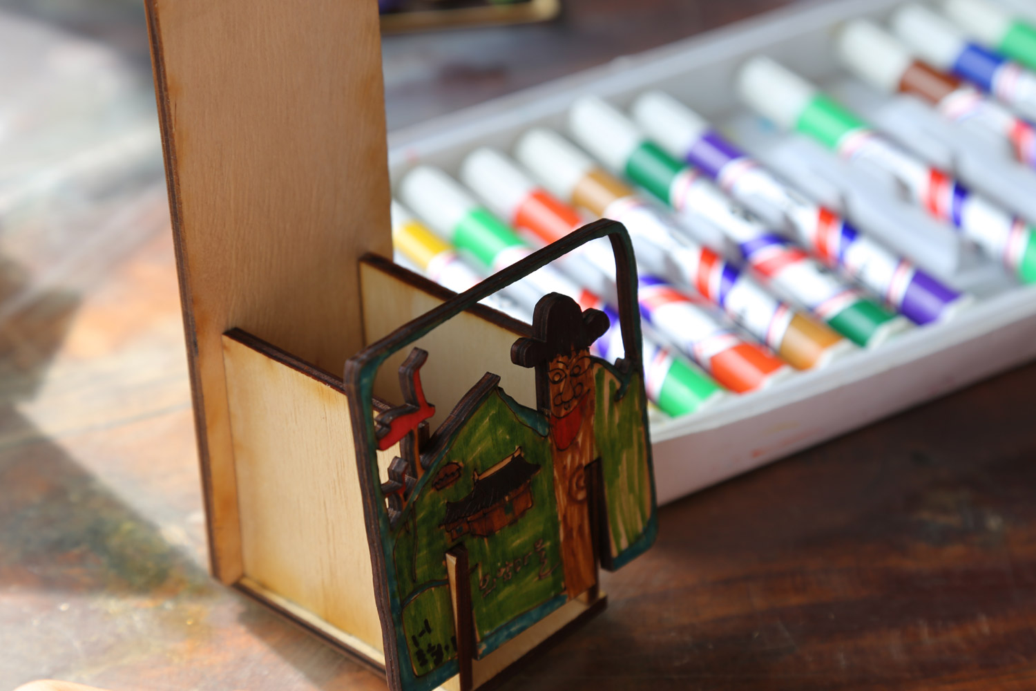 외암마을로고가 들어간 연필꽂이를 만드는 프로그램