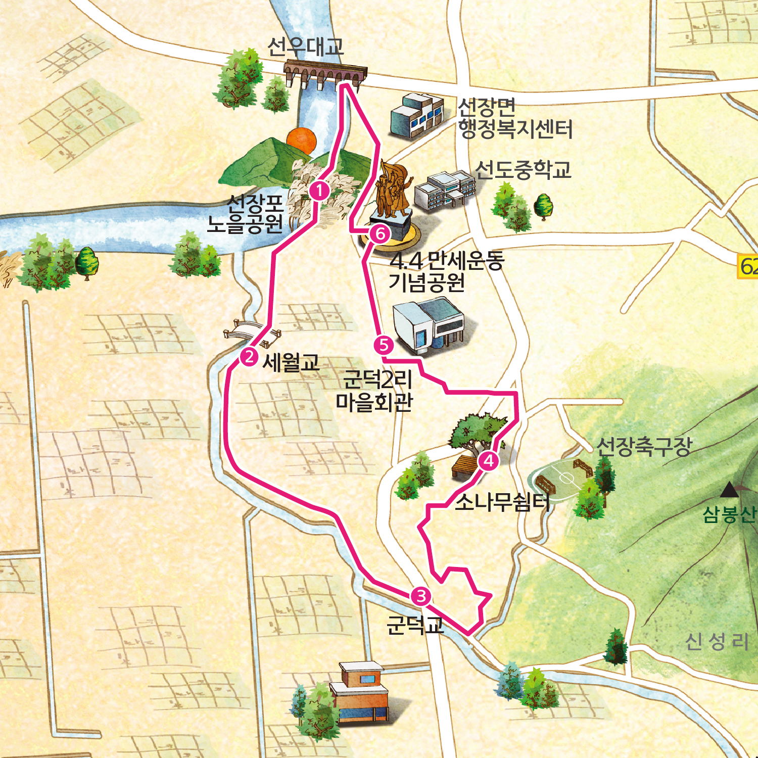마을회관 0.9km - 6 4.4만세운동
