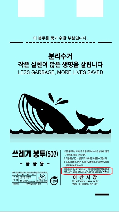 아산시(시장 오세현)는 자원순환과에서 제작하는 종량제 봉투에 사회복지과의 ‘맞..