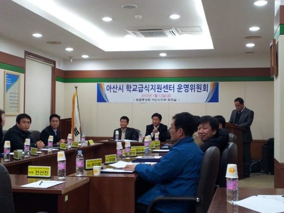 아산시농협연합사업단에서는 지난 13일 2012년도 학교급식지원센터의 투명하고 건실한 운영을 위하여 운영위원회를 시청, 아산교육지원청, 영양교사, 농업인단체, 시민단체, 학부모 대표, 학교급식유통센터 관계자 등 학교급식 전문가로 구성된 학교급식지원센터 운영위원회 제1차 회의를 개최하고 위원에 대한 위촉장 수여 및 지원센터 운영방향에 대하여 토론을 개최했다.