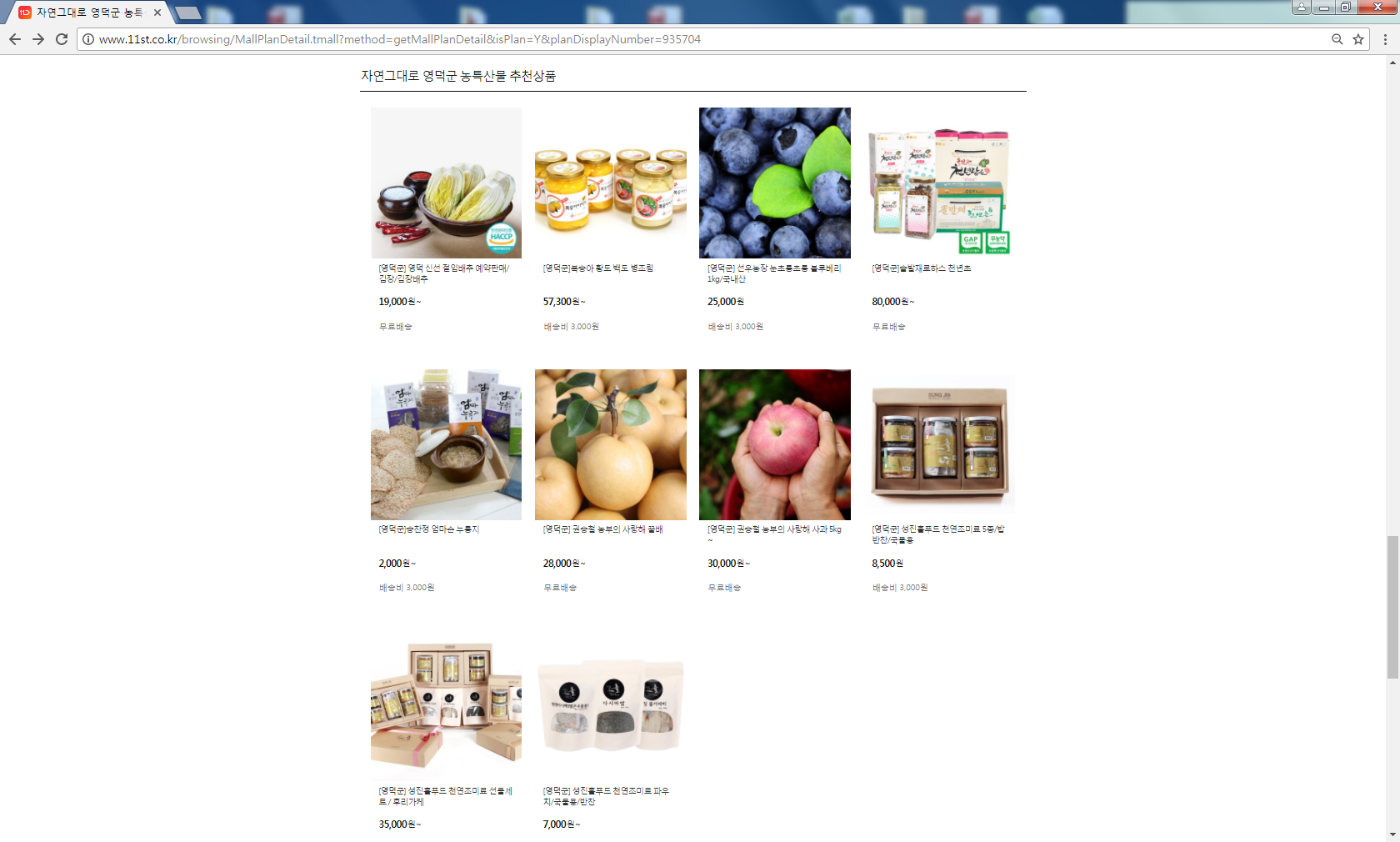 2. 기획상품 : 사과, 배, 절임배추, 블루베리, 복숭아병조림, 천년초가공품, 누룽지, 천연조미료 등